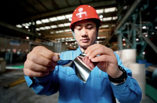 中国宝武太钢不锈钢精密带钢有限公司生产出手撕超薄精密不锈带钢。新华网 图