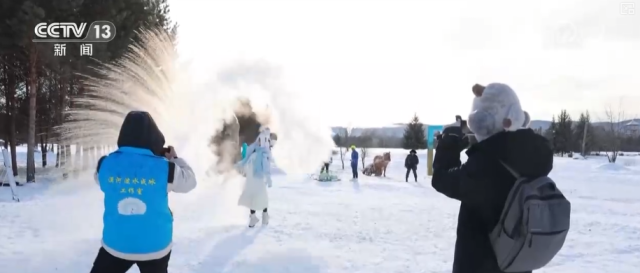 “泼水成冰”一直是北极村最受欢迎的冬季体验项目之一。为提升体验感与安全性,漠河近日开设了首家“泼水成冰工作室”,为游客提供特制泼水器具和主题旅拍服务,并有教练现场免费指导。