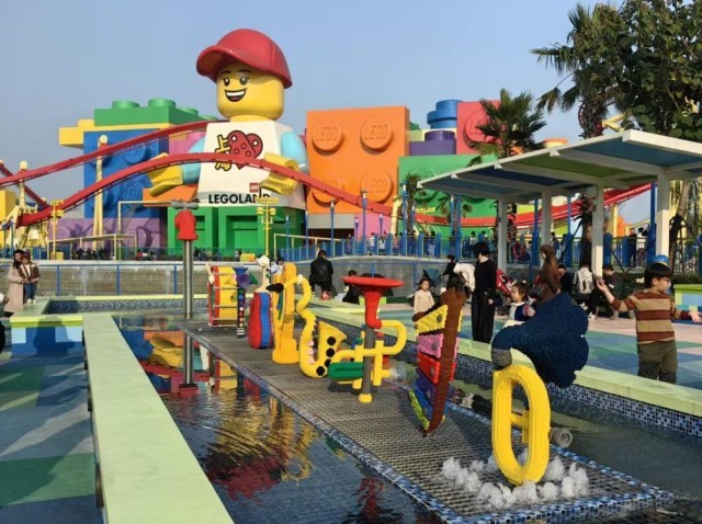 11月22日,上海乐高乐园内,亲子游客在此休憩游玩。新华社记者 陈爱平 摄