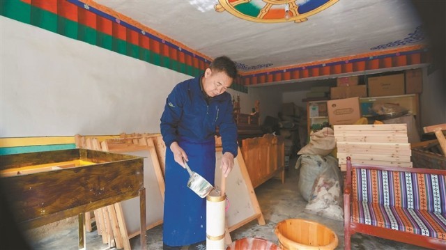创办合作社后,他在保留藏纸耐腐蚀、抗虫蛀优势的同时,开发出灯笼、笔记本、相框等贴合现代生活的文创产品,让这门技艺从“家族传承”走向“群众共享”。合作社成立至今,已先后吸纳10余名当地群众学习藏纸制作,从煮料、捣浆、晾晒到塑形,阿旺曲央都毫无保留地传授技艺,让不少曾靠零散务工为生的村民,拥有了稳定的“手艺收入”。村民查果便是其中一位受益者,“以前打零工收入不稳定,现在跟着阿旺曲央老师学做藏纸,每月能挣2000余元,在家门口就能上班。”