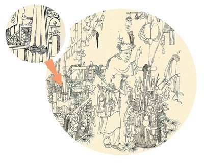 元代王振鹏的《乾坤一担图》里,货郎担上的算盘更是细节毕现,元末陶宗仪《南村辍耕录》中有“算盘珠”的比喻,也侧面印证当时珠算的普及。