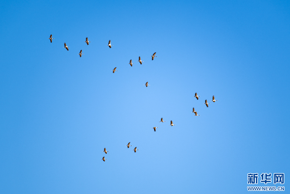 这是11月26日在西藏拉萨市林周县境内拍摄的候鸟。新华网 旦增努布 摄