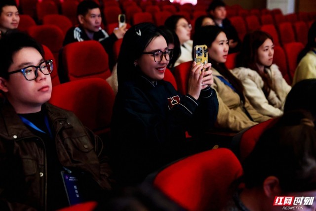 台上,湘剧折子戏《拦马》正演到酣处。杨八姐与焦光普在方桌之间腾挪跳跃,高难度的“盗牌”舞蹈与椅子功引得台下掌声不断。