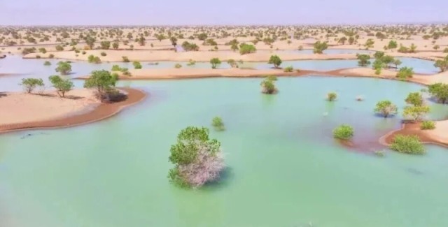 马立新介绍,此处多年前并没见有水,如今“凤凰现世”的奇景,得益于“这几年生态输水的成果。生态越来越好了。”随着塔里木河生态输水、生态引洪工程的实施。类似“楼兰天眼”、和田“翡翠湖”等沙水相依的震撼奇观,在塔克拉玛干沙漠不断涌现。