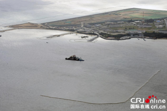 冲绳名护市边野古近海的大浦湾为实现美军普天间机场搬迁而推进施工。(图片来源:视觉中国)