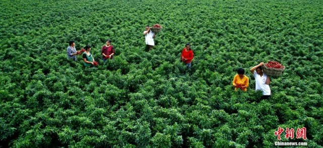 图为鸡泽县椒农正在收获辣椒。(资料图) 王洪超 摄