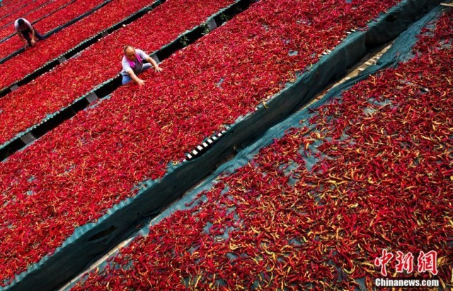 图为鸡泽县椒农在晒辣椒。(资料图) 中共鸡泽县委宣传部供图