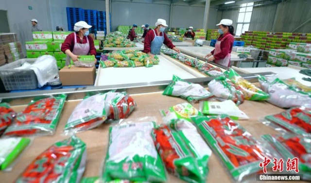鸡泽县湘君府味业有限责任公司工人正在将辣椒成品进行装箱。中共鸡泽县委宣传部供图