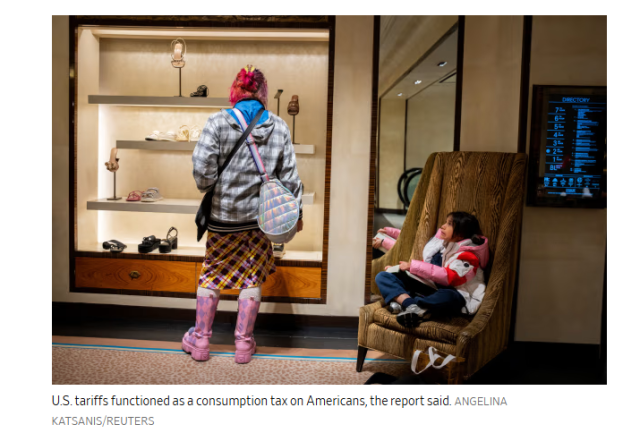 报告称,美国关税实际上相当于对美国民众征收消费税。路透社报道截图