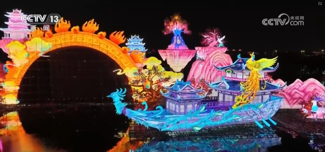 这座大型灯组《百鸟归巢》以凤凰展翅为核心,周边百鸟盘旋,展现出百鸟朝凤、吉祥如意的恢弘景象。1月31日晚,厦门方特东方神画新春灯会也精彩亮相,约16米高的主灯组“琼楼仙境”把广场装点得如梦似幻,游客穿行其间,沉浸式感受新春的喜庆氛围。