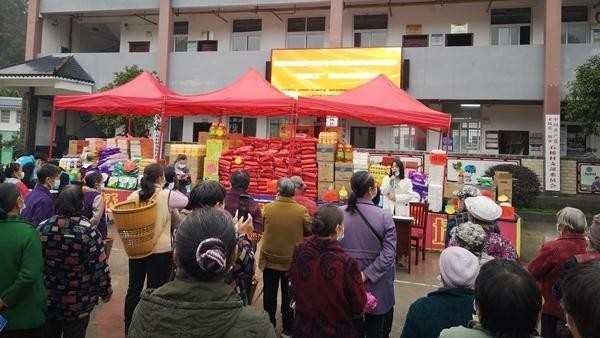 2022年12月,湖北省恩施州来凤县三胡乡石桥村的“转转工”们在凭积分兑换物资。三胡乡政府供图