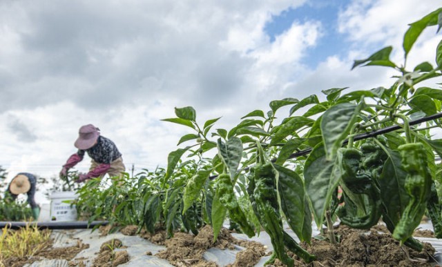 2026年2月3日,海南省琼海市塔洋镇农民在采收辣椒。