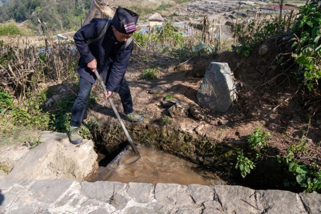 2026年1月31日,云南省红河哈尼族彝族自治州元阳县新街镇村民在清理水渠。