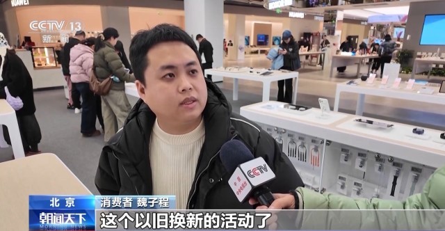 消费者 魏子程:24年的时候我就已经知道这个以旧换新的活动了,那个时候先买了一个智能手机,今年又新买了一个智能手表,政策对我们老百姓比较好,节省了一部分资金。