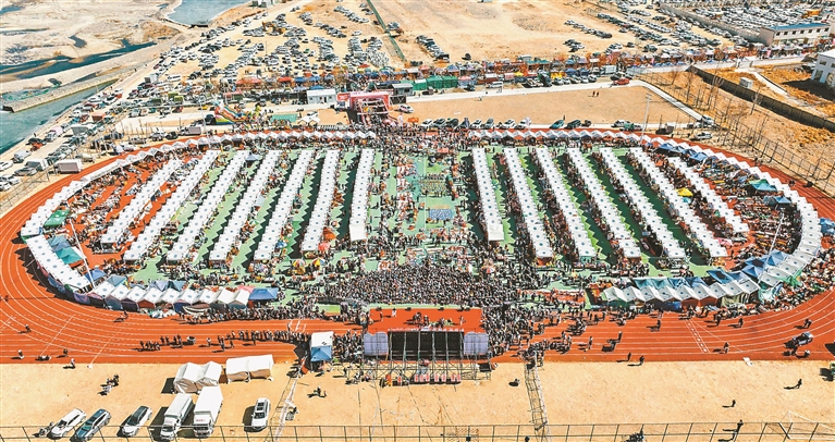 在体育场入口处,扎西顿珠正向工作人员展示刚刚核销的“满100减30”消费券。“给阿妈添了件新藏装,又给家里买了些牦牛肉干和青稞点心,算下来省了不少钱呢。”他高兴地说。