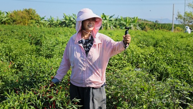 杨红举着相机在田间穿梭,兴奋地展示:“看,这就是我们辛苦几十年培育的‘宝贝’,千‘椒’百媚!”
