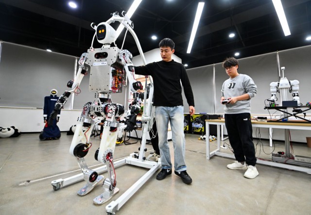2月27日,在位于天津滨海高新区的天津木牛流马科技发展股份有限公司,工作人员对一款具身机器人进行测试验证。新华社记者 赵子硕 摄