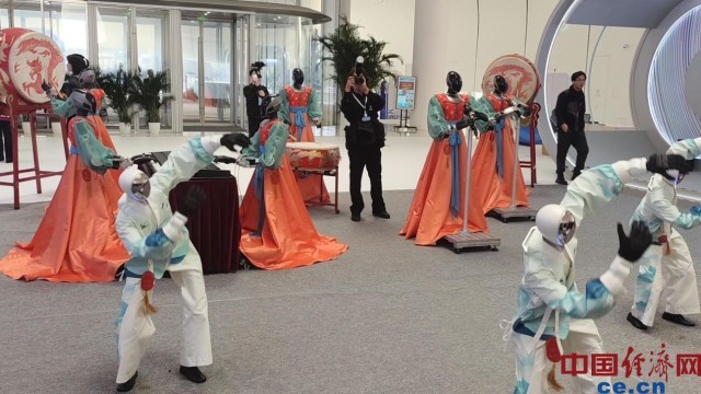 机器人乐队与舞蹈机器人联袂献上精彩表演。中国经济网记者 朱晓倩/摄