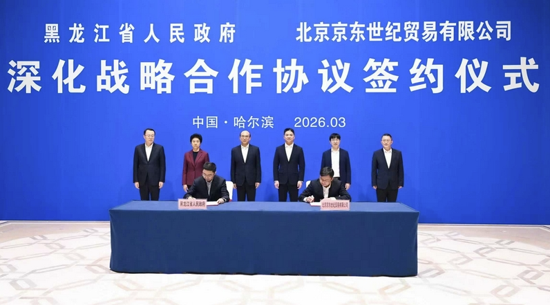 许勤、梁惠玲代表省委省政府欢迎刘强东一行,表示黑龙江全面落实党的二十届四中全会和全国两会部署要求,谋划推动“十五五”时期发展,加快构建现代化产业体系,因地制宜发展新质生产力,推进中国式现代化龙江实践。京东集团与黑龙江合作基础坚实、前景广阔,希望双方以签约为契机,进一步发挥各自优势、创新合作模式,推动龙江大基地和京东大平台有效对接,深化市场消费、对外贸易、人工智能+、文旅融合、物流网络、采购销售等领域务实合作,携手服务国家大局、推动龙江振兴发展。黑龙江将持续优化营商环境,为企业发展壮大创造良好条件。