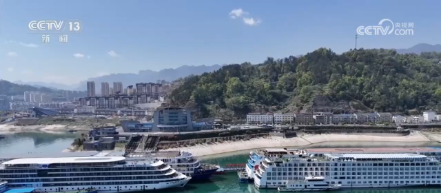 长江的绿色航运不仅带动了船舶制造业发展,也让三峡旅游日益红火。在正前方,就是三峡大坝。旁边的秭归客运港,每天都有大型游轮停靠,游客们可以登岸,感受秭归这座三峡库首第一县的民俗风情、厚重历史。今年一季度,秭归港客流量超过十万人,同比增长3.9%;全县累计接待游客260万人次,实现旅游综合收入15亿元。