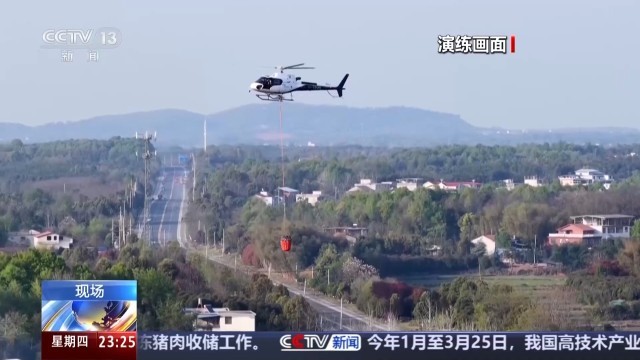 近日,在湖北咸宁,举行了一场“空地协同”的防山火实战演练。此次演练模拟500千伏输电线路周边发生山火,一架直升机接到指令后,迅速吊桶取水,扑灭模拟山火。