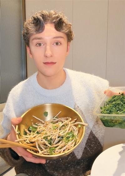 芬格尔展示自己烹饪的春菜。