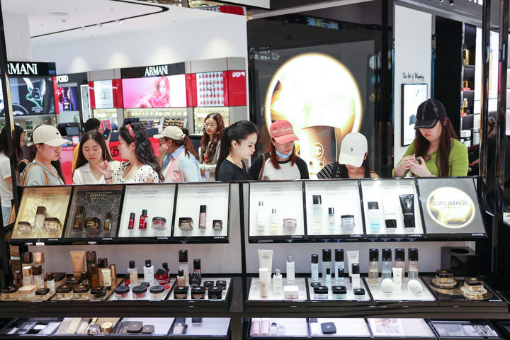 2026年3月25日,顾客在海口日月广场免税店选购商品。