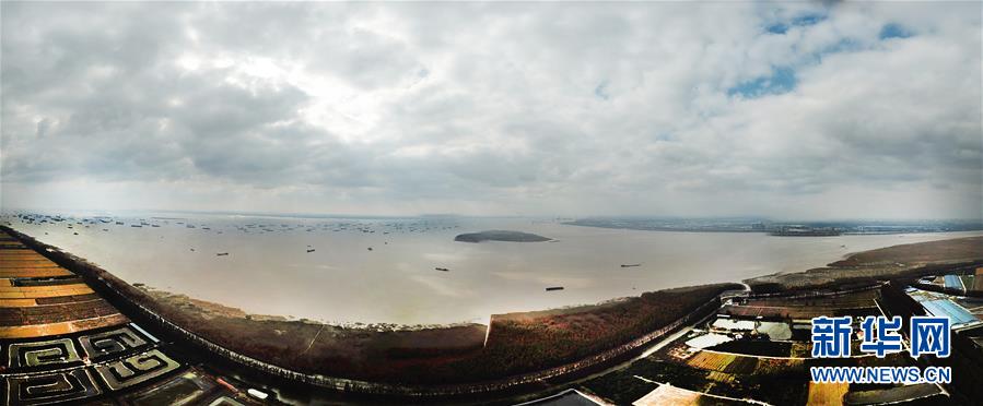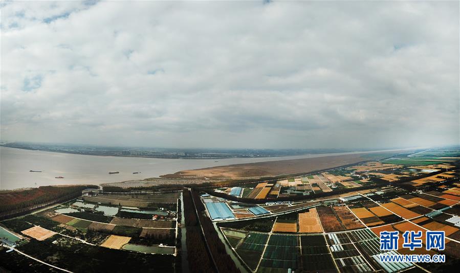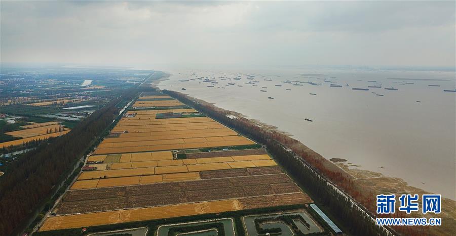 鸟瞰地处长江入海口的崇明岛西北端(11月28日无人机拍摄)。 新华社记者 方喆 摄