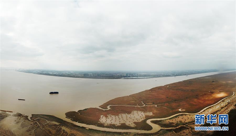 长江带来的泥沙在崇明岛形成新的滩涂(11月28日无人机拍摄)。 新华社记者 方喆 摄